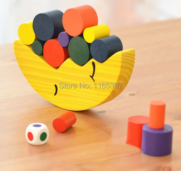 Us 13 99 Freeship 1set Children Kids Wooden Montessori Geometric Blocks Moon Balancing Game Early Development Educational Materials Toys In Blocks